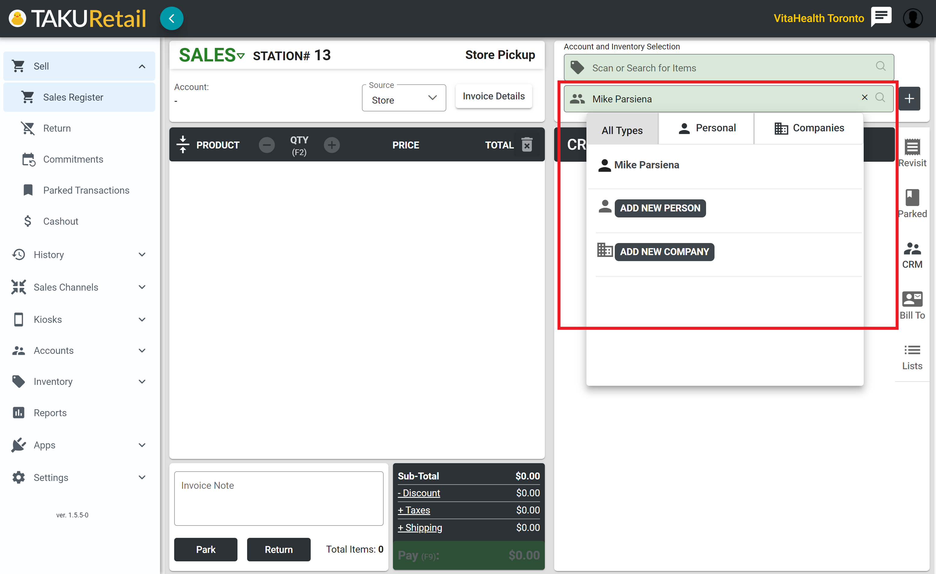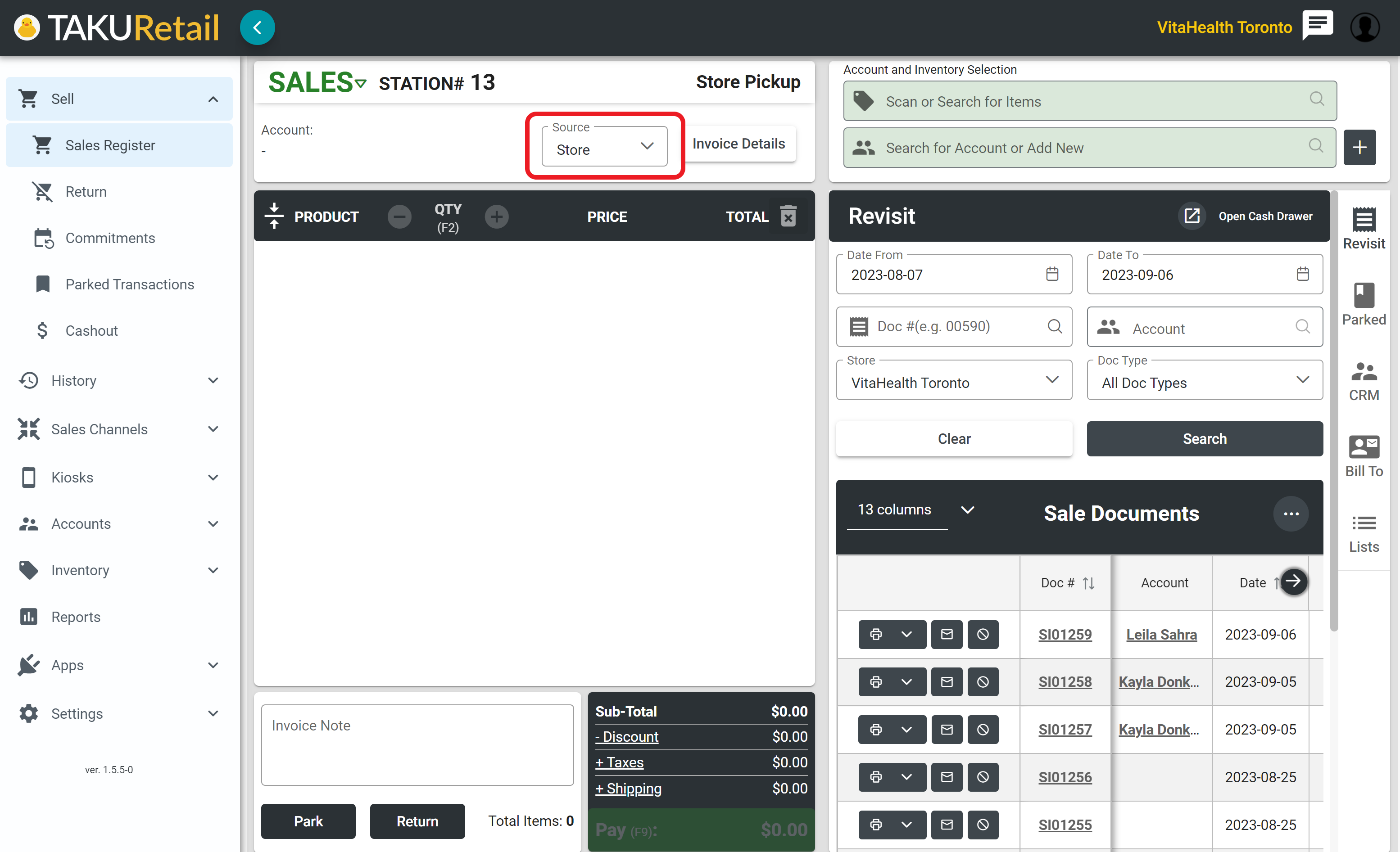From the sales register, change the Source field at the top of the salesscreen to Store, Phone or Online